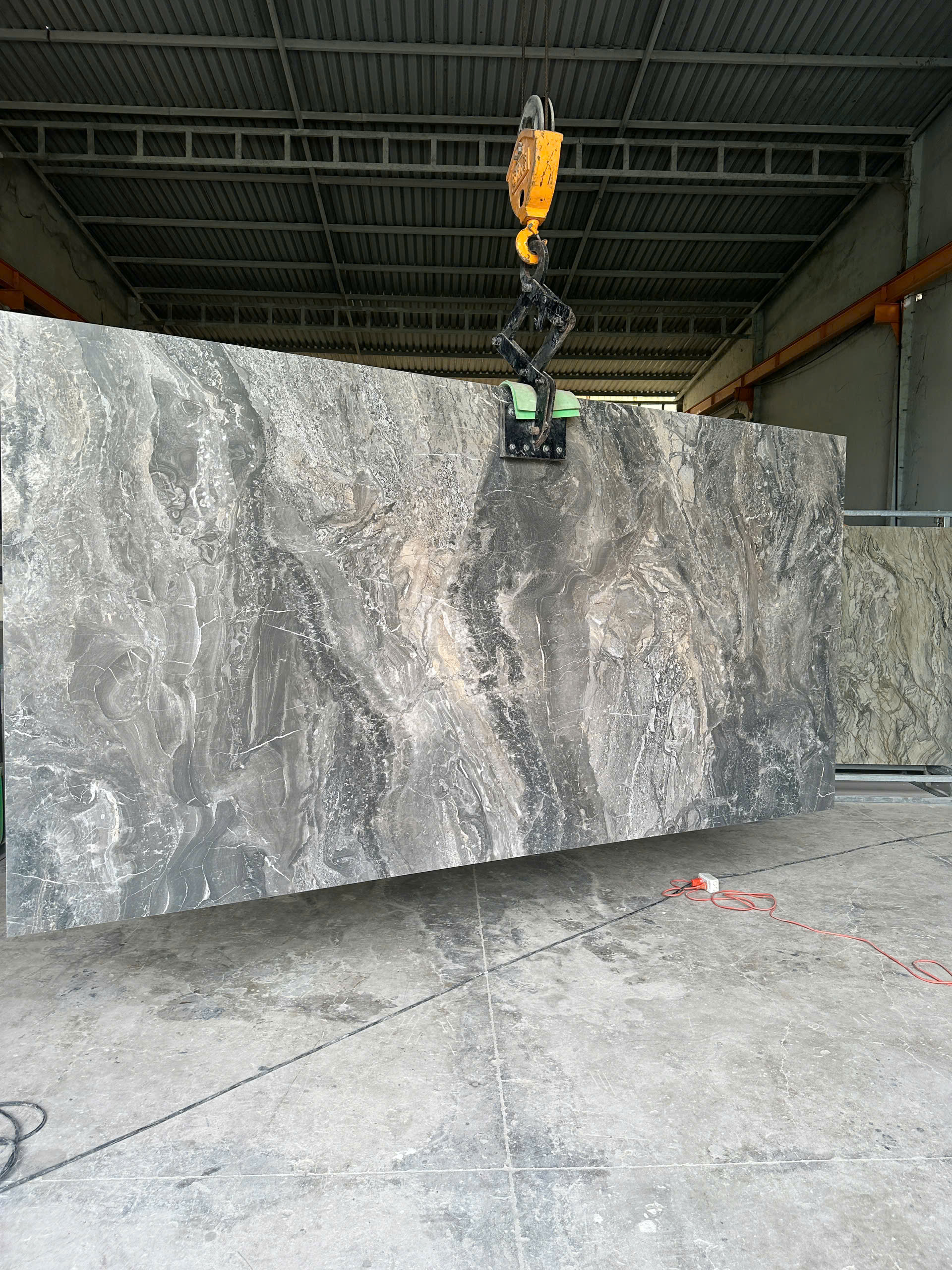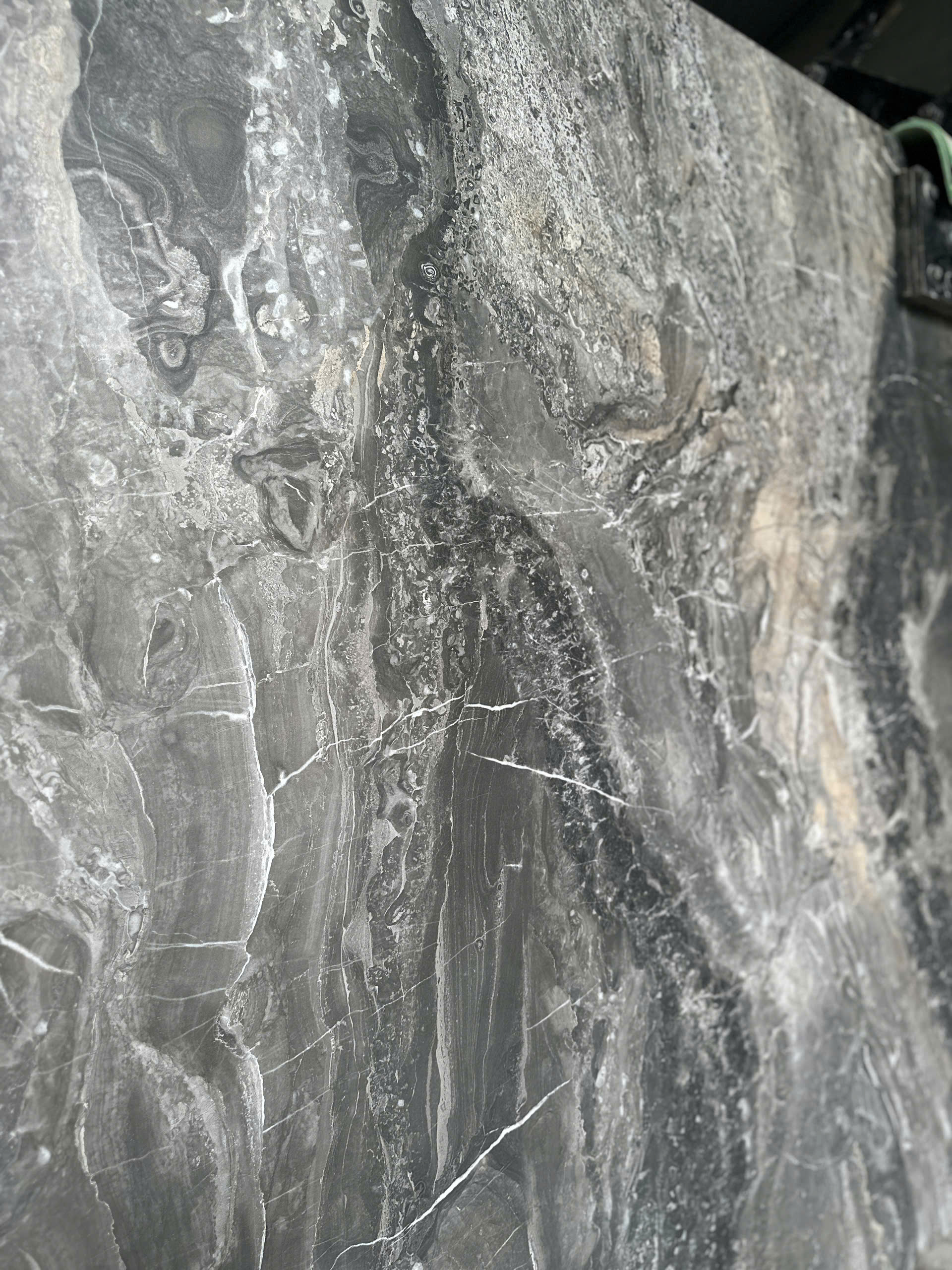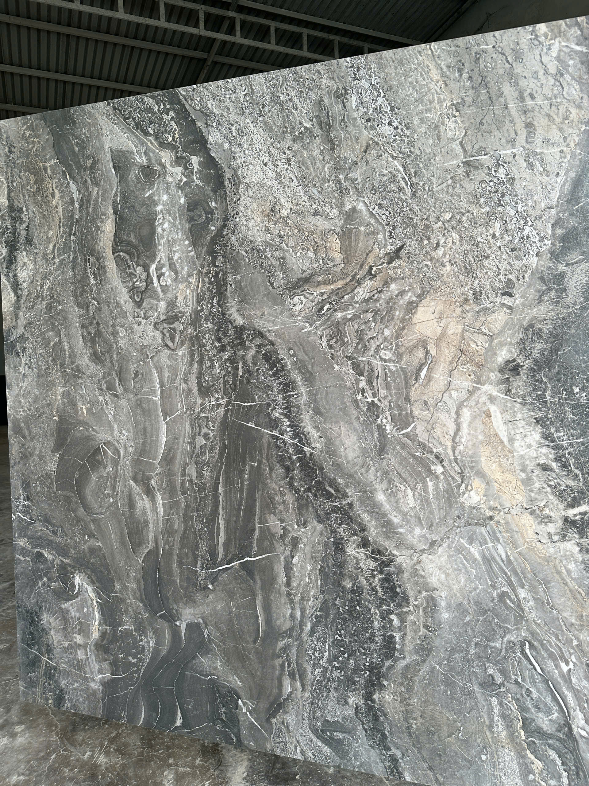 | Sắc độ – vân | Nền xám – trắng, vân dòng chảy/địa tầng mạnh, có thể bookmatch |
