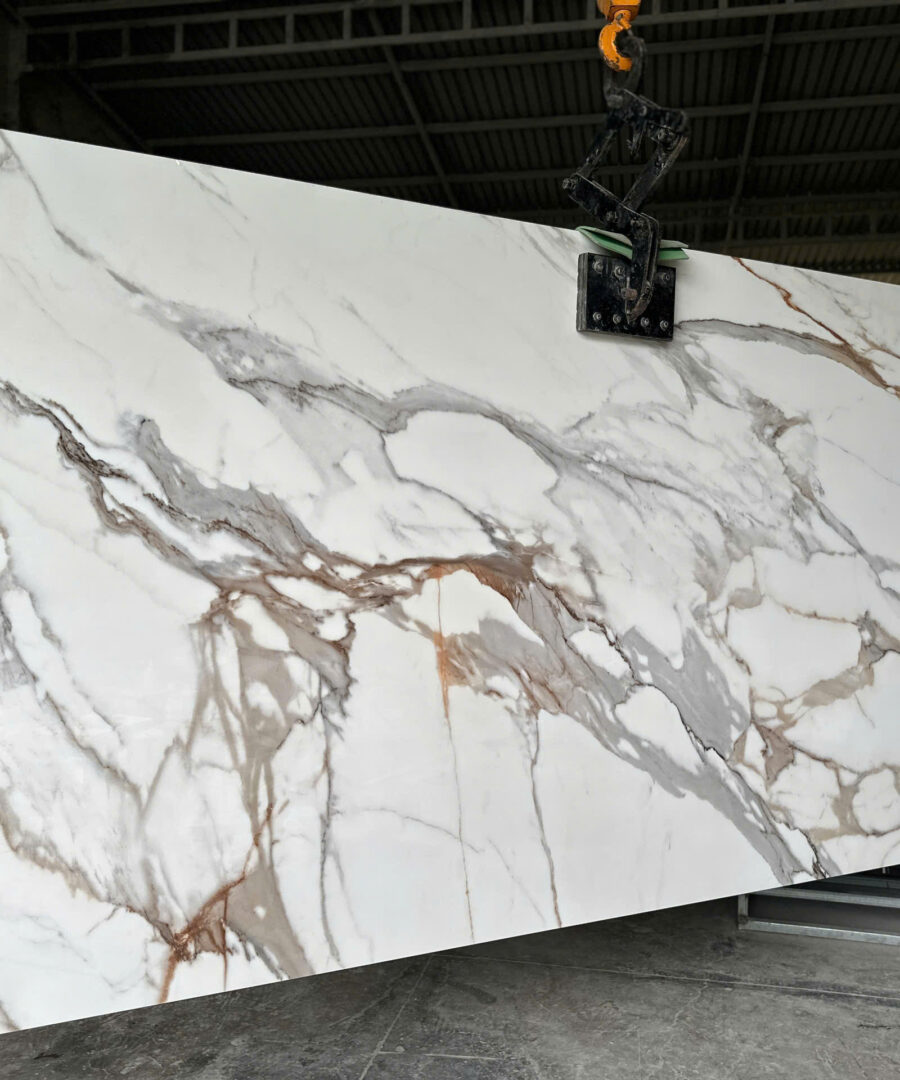 Liên hệ để nhận mẫu Đá nung kết Calacatta Borghini (100×150mm), tư vấn layout cầu thang có đèn và xem tấm thực tế tại kho/xưởng ngay hôm nay.