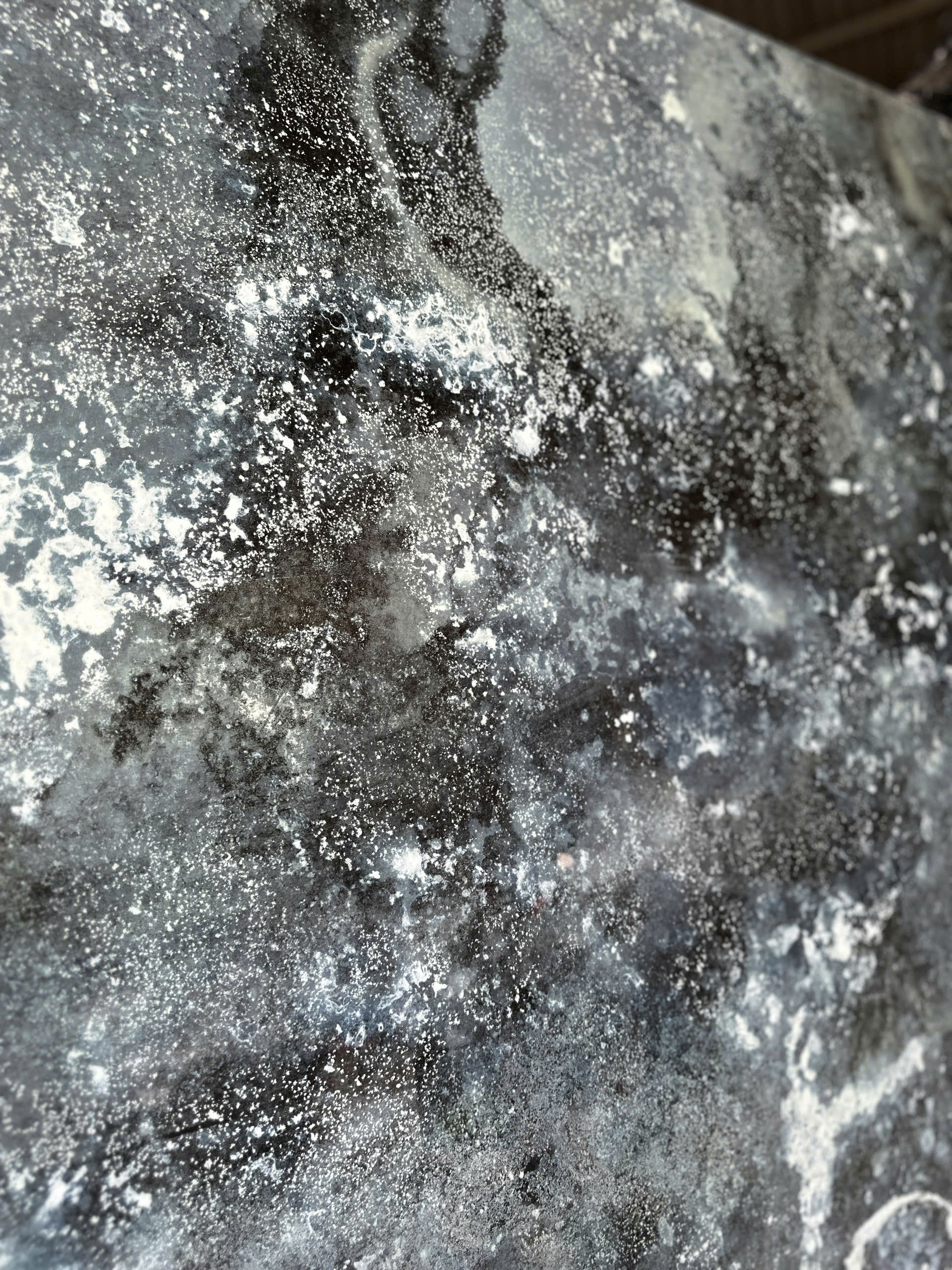 Chiều sâu thị giác: lớp vân đá không phẳng lỳ mà tạo hiệu ứng tầng lớp – có vùng sáng loang như mây, có vùng tối sâu hút như biển khơi. Nhờ vậy, mặt bàn hay mặt dựng trở nên sống động, có hồn và luôn thay đổi theo ánh sáng môi trường.
