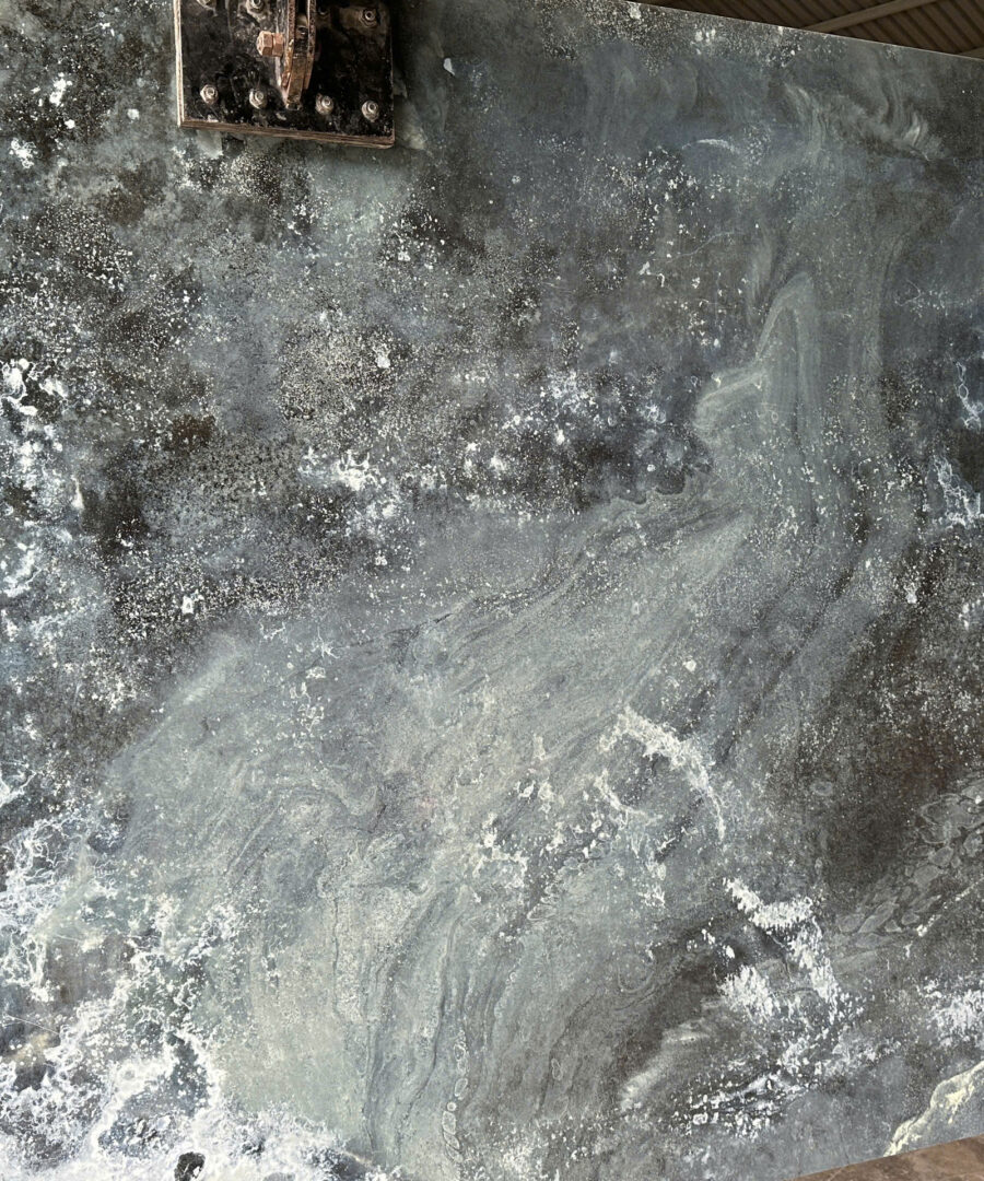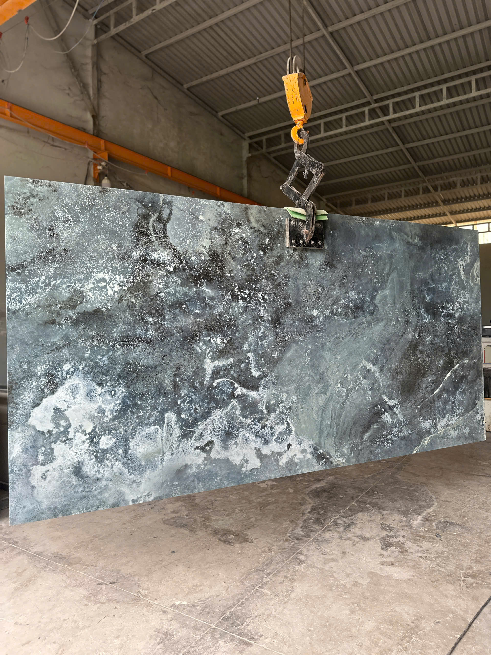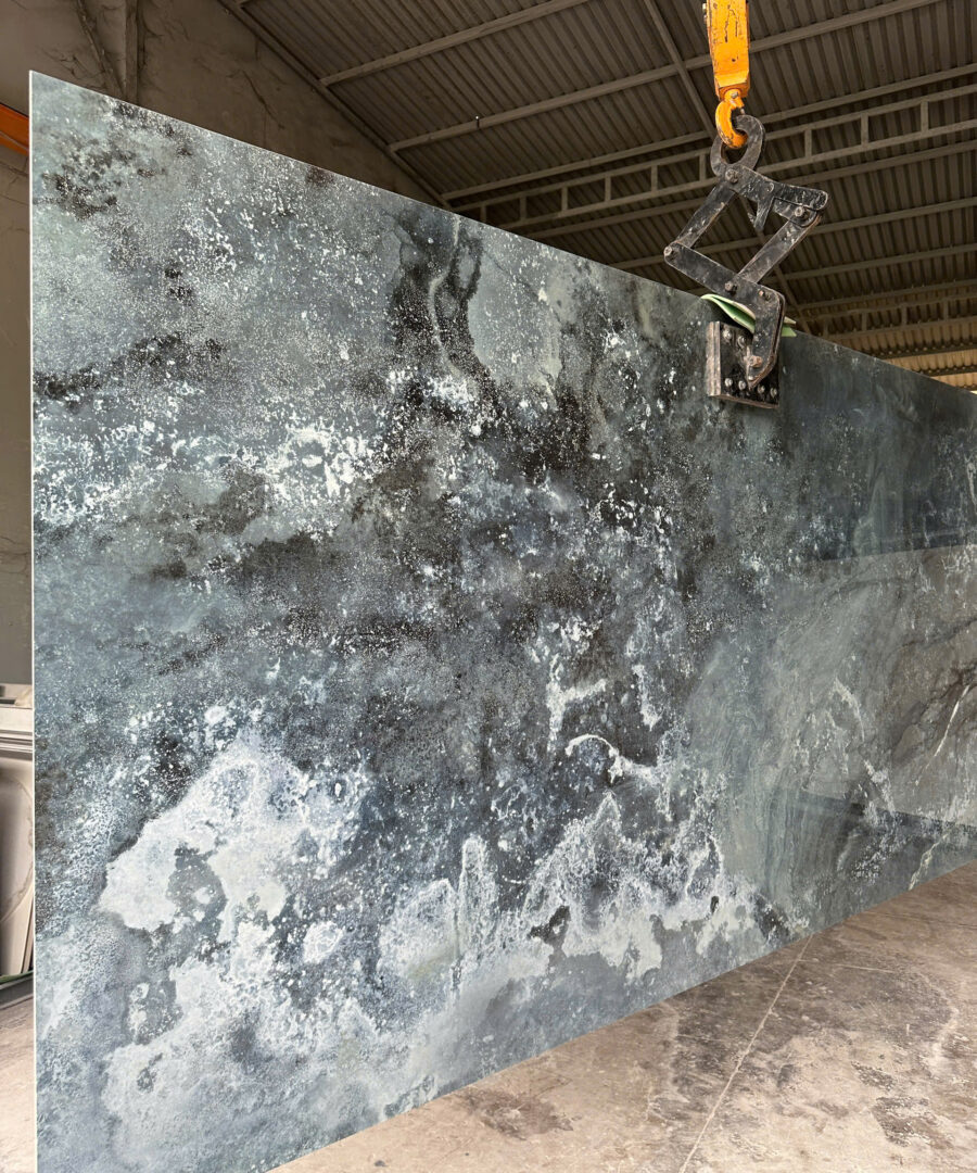 Sự giao thoa của bầu trời và đất: những vân xám, ghi đậm nhẹ nhàng hòa vào sắc xanh, như đường chân trời mở ra không gian rộng lớn. Điều này khiến Cosmic – Ottanio không chỉ là vật liệu, mà còn là một “tác phẩm nghệ thuật” thiên nhiên.