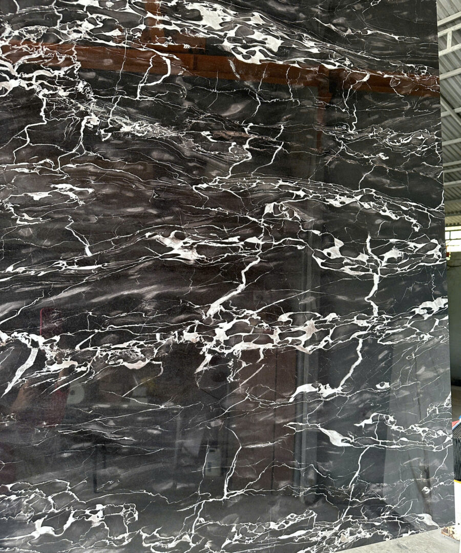 Đá nung kết Portoro Silver là bề mặt sintered stone lấy cảm hứng từ đá Portoro cổ điển, nhưng thay dải vàng truyền thống bằng chỉ vân bạc/khói hiện đại. Nhờ công nghệ nén – nung ở nhiệt độ rất cao, đá nung kết Portoro Silver có cấu trúc ổn định, tỷ lệ hút nước gần như 0%, khó thấm – chống ố – chịu nhiệt/UV vượt trội. Bản chất tấm lớn 160×320 cm giúp thi công mạch ít, tạo cảm giác liền khối – sang trọng trong bếp, lobby, vách TV, quầy lễ tân hoặc boutique.